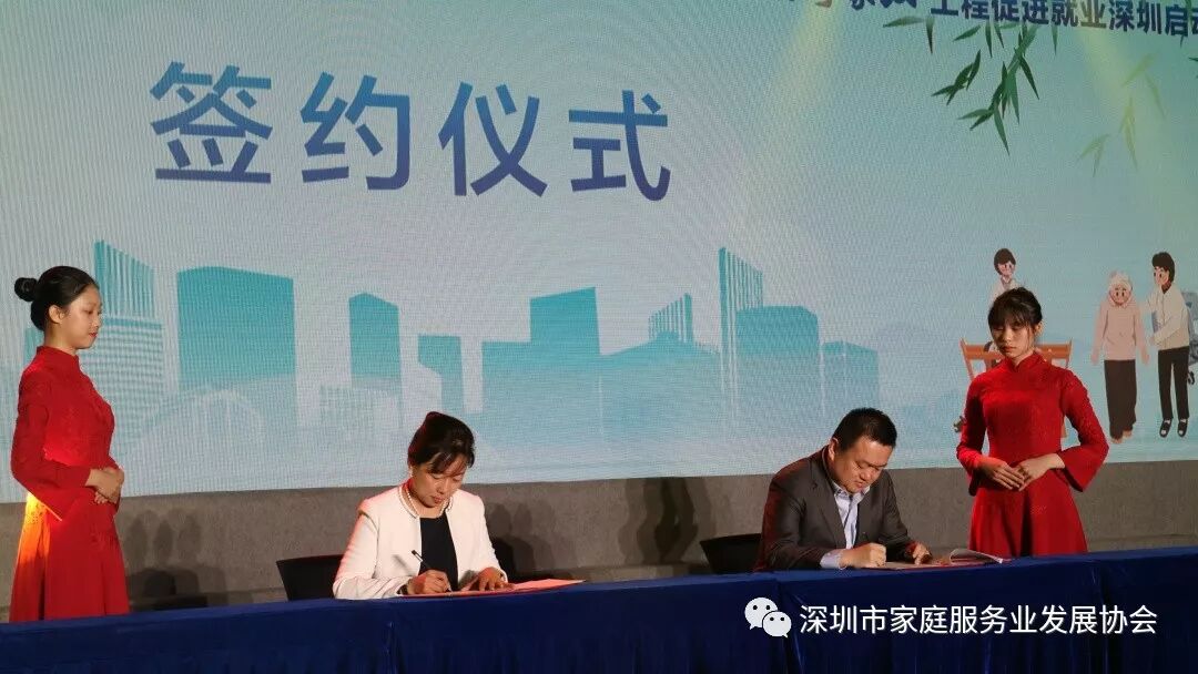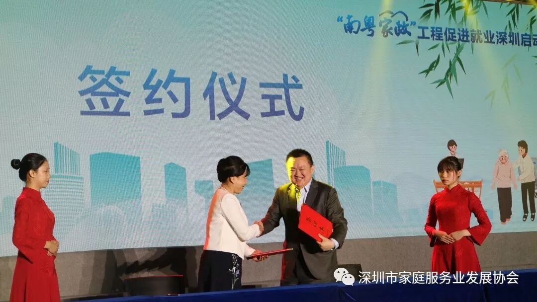 抓好“南粤家政”工程工作,就是要提高政治站位、就是要抓住粤港澳大湾区和深圳中国特色社会主义先行示范区建设重大机遇,发挥“双区驱动”优势,加强粤港澳大湾区家政服务业深度合作。启动仪式现场举行了家政校企合作及劳务合作签约仪式。首先是深圳职业技术学院与华润置地签订战略合作协议,双方将在共同建设老年服务与管理专业、新型学徒制人才培训、共建养老服务标准化研究院,开展养老服务职业技能等级评价等方面开展合作。紧接着华夏技工学校与深圳市桂东家政服务有限公司签订合作协议,推动在专业共建、师资交流、实训基地建设等方面的合作。最后,为落实精准扶贫,加大家政服务业劳动力资源开发、技能培训、转移就业等方面进行合作,广西百色市、河池市人力资源和社会保障局与深圳市家庭服务业发展协会签订战略合作框架协议。