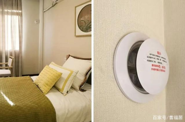 为了保障疫情期间的空气流通,养老机构内应设计户式新风系统。每个房间设置换风口,卫生间里设置排风扇,以便每天定时开窗通风。