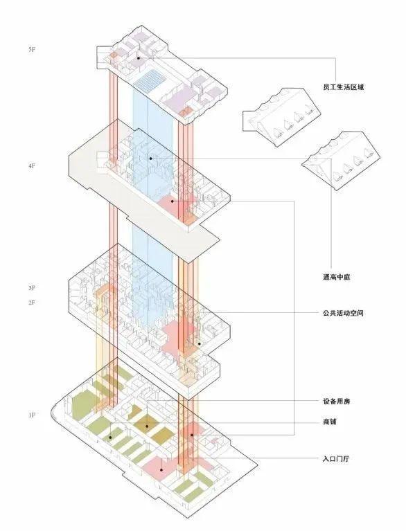 以天津万科怡园长者中心为例,设计时将未开放楼层空间留作了员工的独立后勤空间。疫情期间隔离状态下,员工不方便出入之时,不会产生生活上的不便。