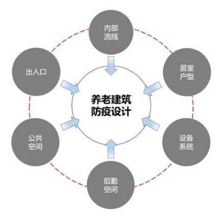 本文将从养老机构中的出入口、内部流线、居室户型、公共空间、后勤空间以及设备系统等多个设计角度,探讨疫情之下的养老建筑防疫设计要点。