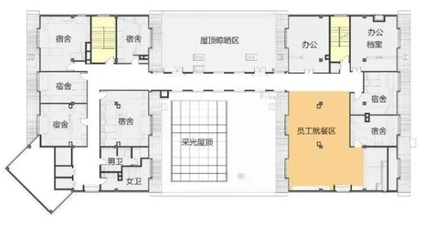 后勤空间包括员工宿舍、独立卫生间、办公空间以及员工就餐区,一方面保证了员工的日常生活需求,另一方面养老机构的日常运转也不会受到太大影响。