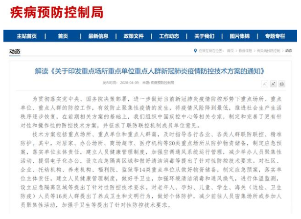为进一步做好当前新冠肺炎疫情防控形势下重点场所、重点单位、重点人群的防控工作,有效防止聚集性疫情的发生,将疫情风险降到最低,推进社会生产生活秩序逐步恢复,在前期相关方案的基础上,国务院有关部门组织了中国疾控中心等相关专家,制定和完善了更有针对性和操作性的防控技术方案。