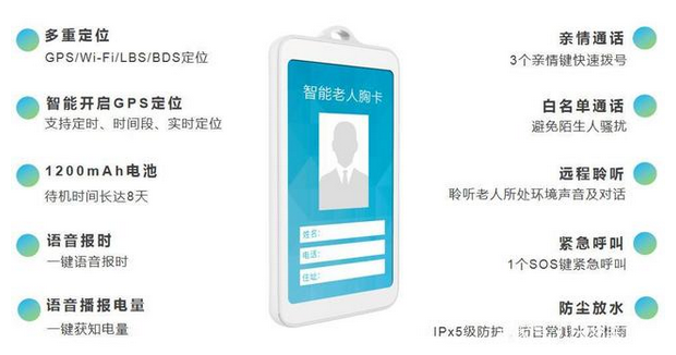我国养老事业未来发展的主要方向之一是智慧社区养老,这种嵌入式的养老模式需要从智慧社区建设、居家服务、医疗护理等多方面进行资源整合,结合简易操作的智能穿戴设备实时守护老人安全,相比老人手环、老人gps定位器,智能老人定位胸卡的可延展性,能够更好的满足智慧社区养老项目专业化、个性化服务的需求。