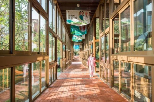成都医养结合机构成都医养结合机构整体采用全院无障碍、防跌倒设计,卫生间设置紧急呼叫系统、防跌倒扶手等,充分考虑了老者的不便,保证就医安全。房间设计针对老年人害怕孤独、喜欢倾诉的特点,以四人间为主,设少数双人间。根据我国目前医护人员的实际情况,可以更好地满足老年患者医疗护理的要求,又能较好利用卫生资源。房内的布置具有家庭生活的气氛,给老年患者以亲切,温馨的感觉。床的条纹隔帘可以充分地保护患者隐私。活泼的图形设计有助于缓和患者在检查及休息时的不安心情。所用材料环保、易消毒,造型设计符合人体工程学标准,考虑防滑、防撞、不易积灰,空调出风口位置避免对人吹。