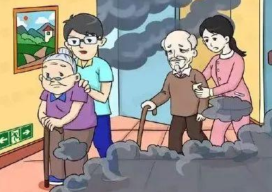 3.养老机构起火疏散过程中要注意尽可能分散人流,避免大量人员涌向一个出口,造成人员踩踏。养老机构应针对行动不便的老人专门设计疏散逃生路线,制定应急逃生预案。
