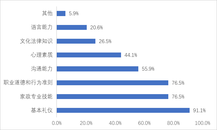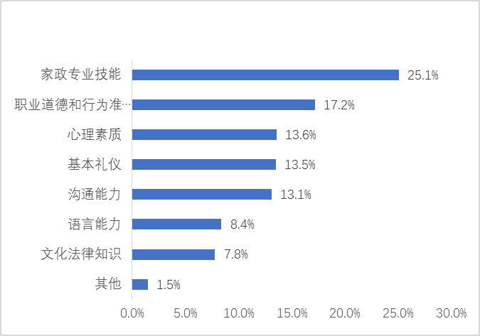 家政服务从业心理健康水平总体偏低,很多人缺乏归属感、安全感,社会偏见导致这部分人群易产生自卑心理。14%受访者认为“心理素质”是家政工作中的必备素质,情绪管理、沟通技巧及职业尊严培训亟需普及。