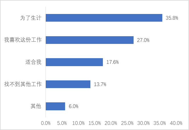 除少部分意外险、责任险外,53%的被调查对象表示未“被”买保险,家政业社会保障缺失,整个行业人口流动率高,反映国家和政府政策制度需不断完善。