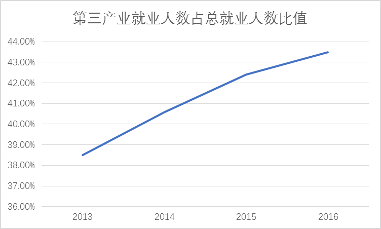 2.1.4 第三产业就业人员占总就业人员比值不断上升11